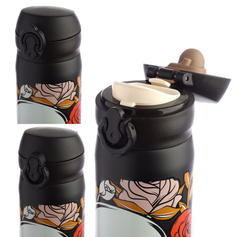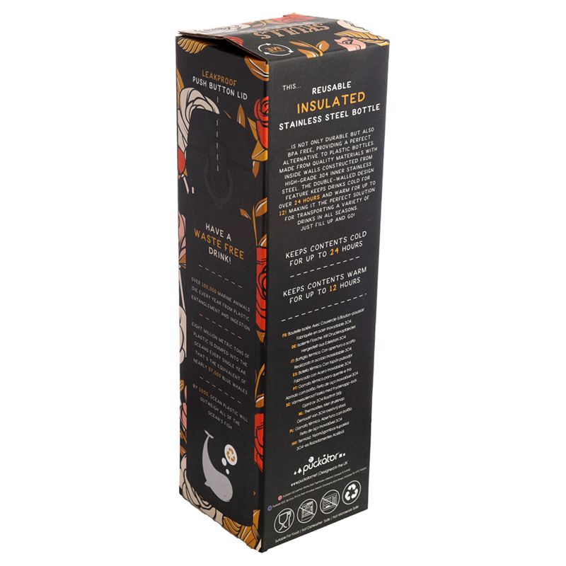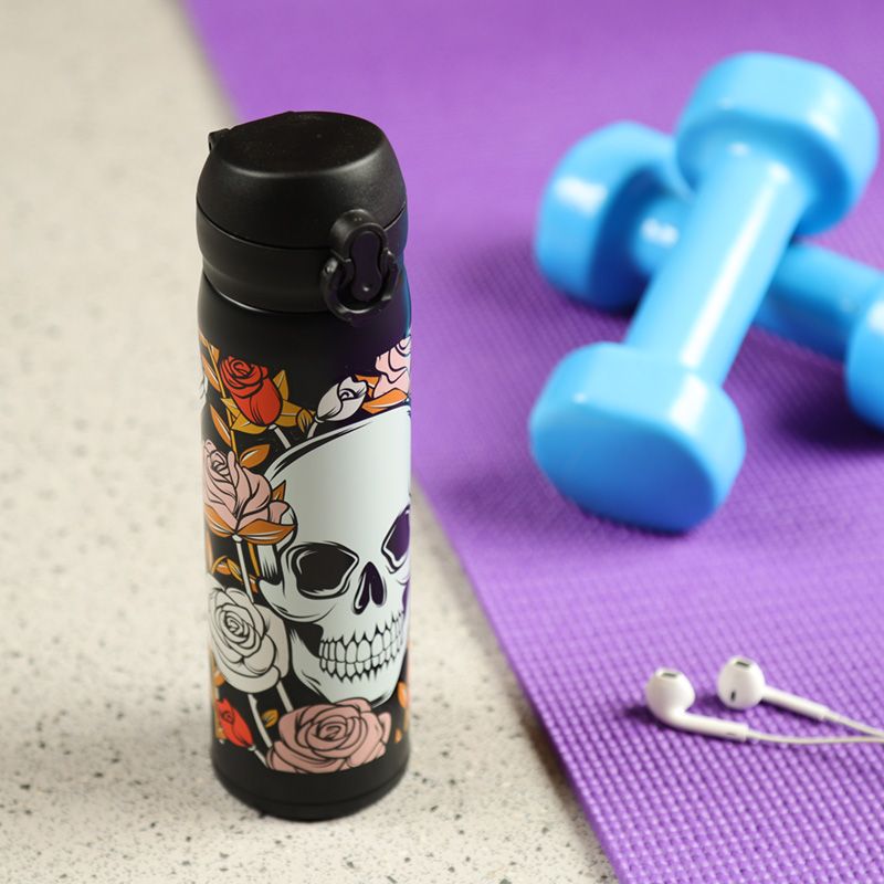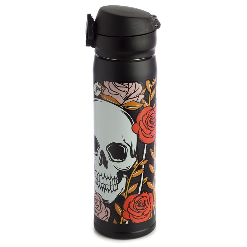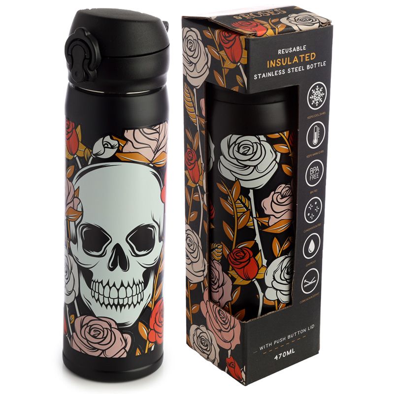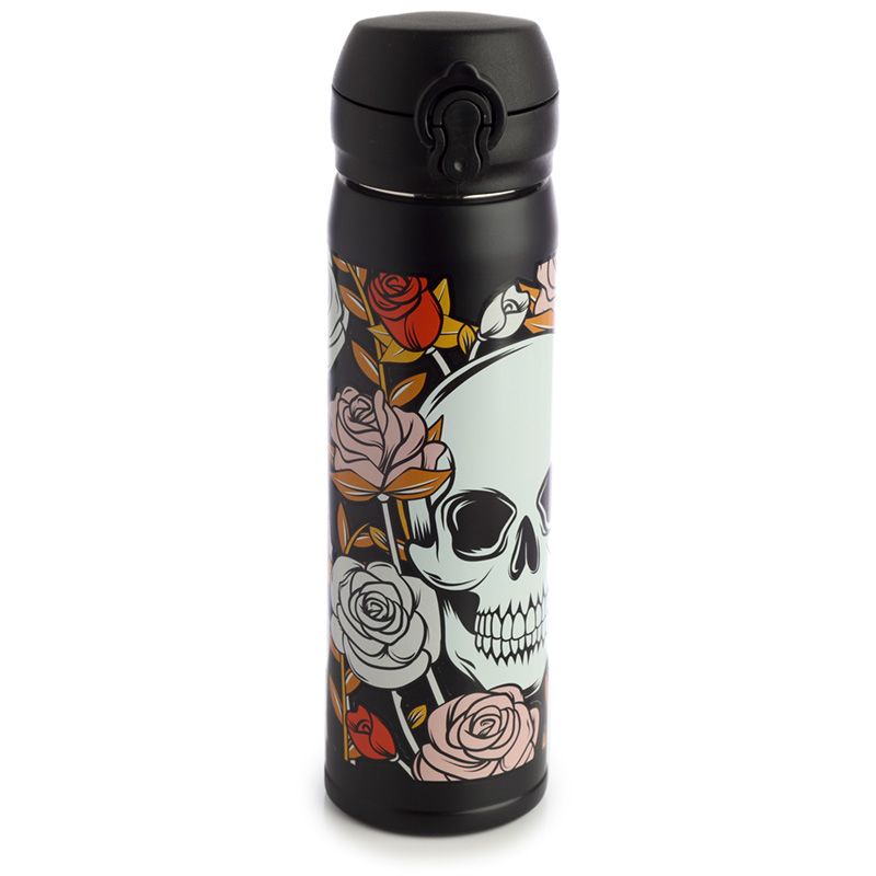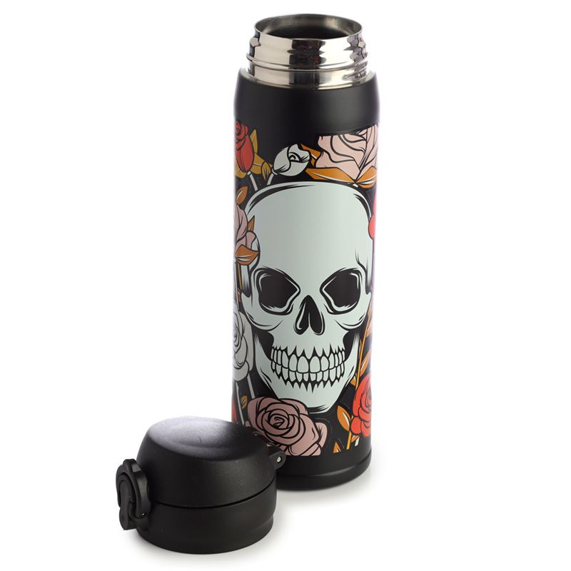Butelka ze stali nierdzewnej wielokrotnego użytku Push Top termoizolacyjna na gorące i zimne napoje - Czaszki i róże