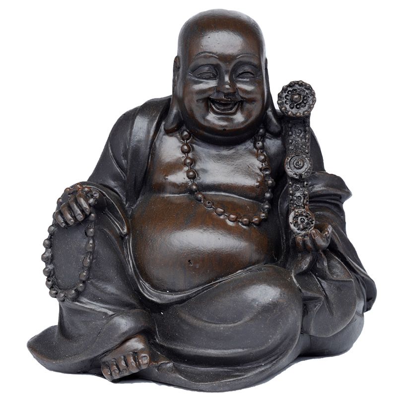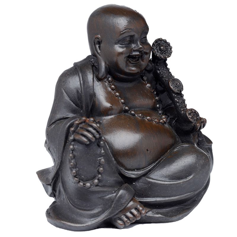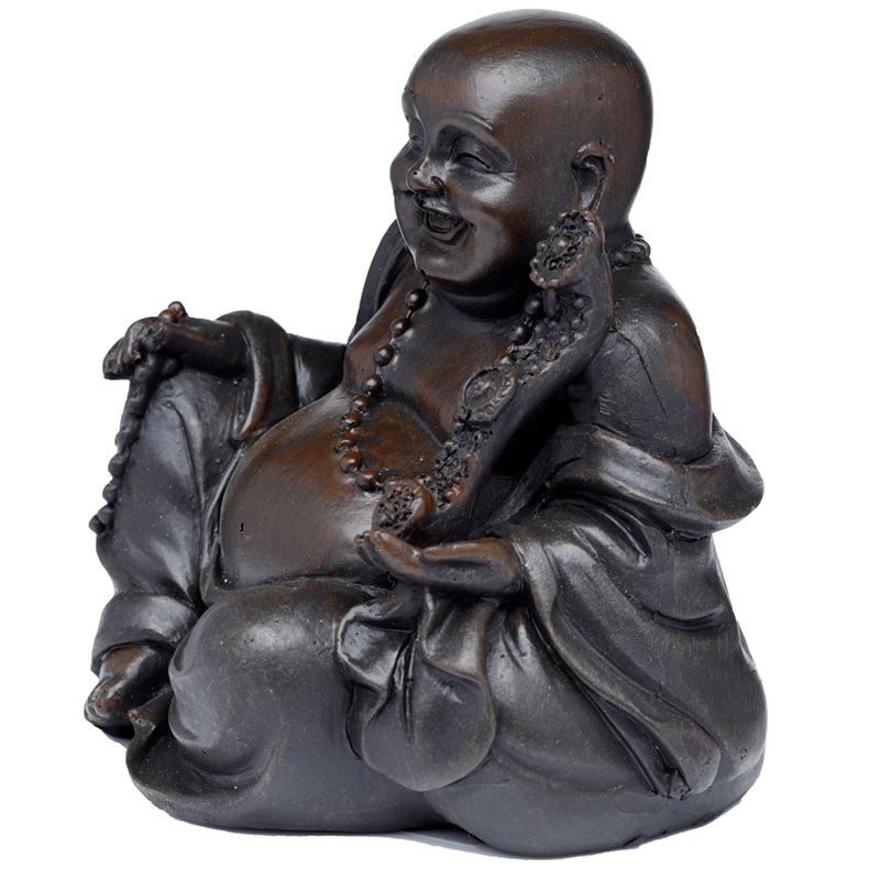 Ozdobna figurka z efektem szczotkowanego drewna "Pokój Wschodu - Szcześliwy Budda"