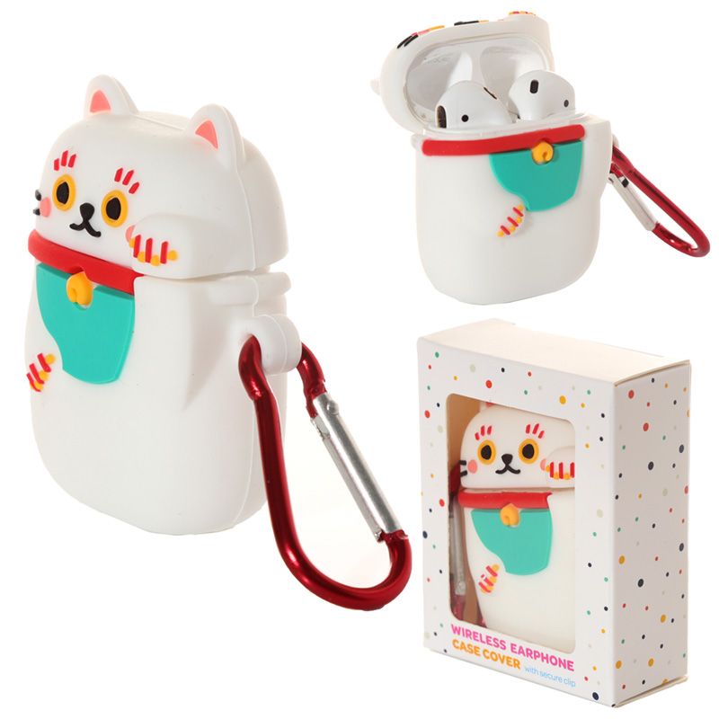 Etui na słuchawki w twardym pudełku silikonowe "Kot Szczęściarz Maneki Neko" (nie zawiera słuchawek i pudełka)