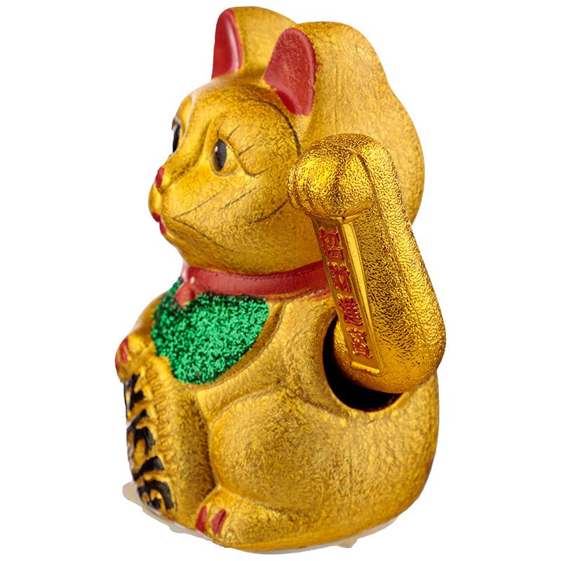 Maneki Neko Waving Cat, Eyes Open 17cm