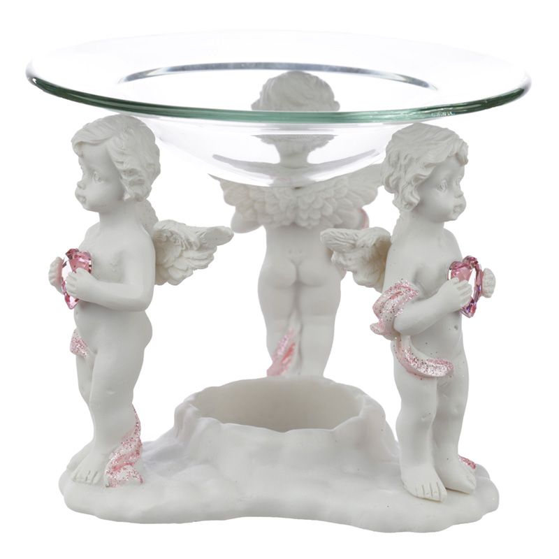 Palnik olejowy ze szklanym naczyniem z figurkami Cherubinków "Pokój Niebiański - Wezwanie Serca"