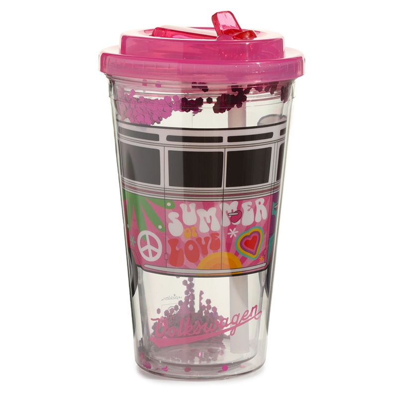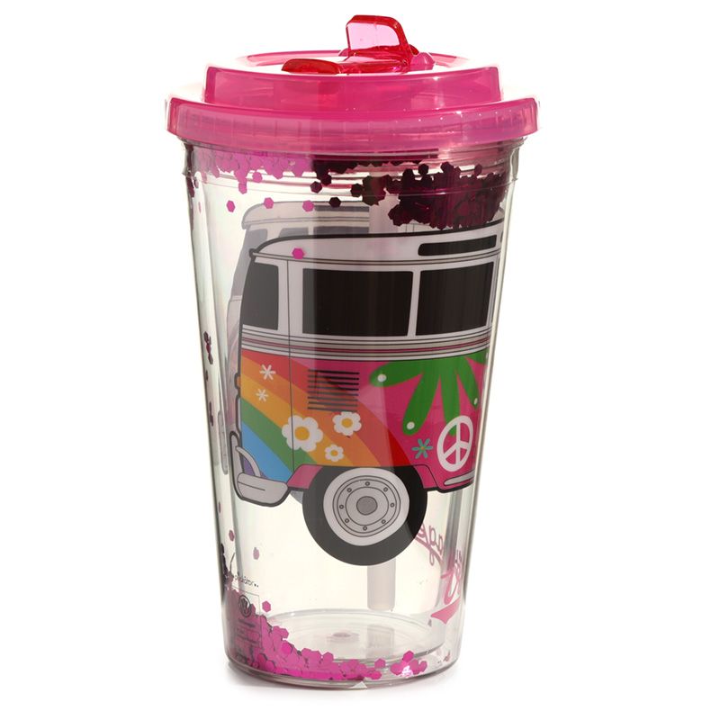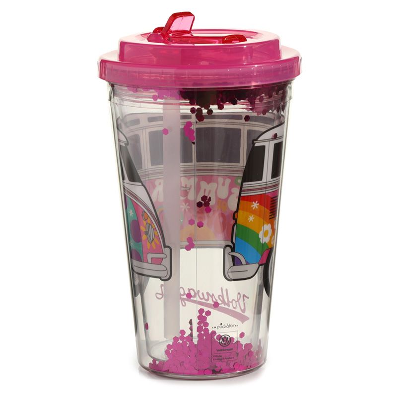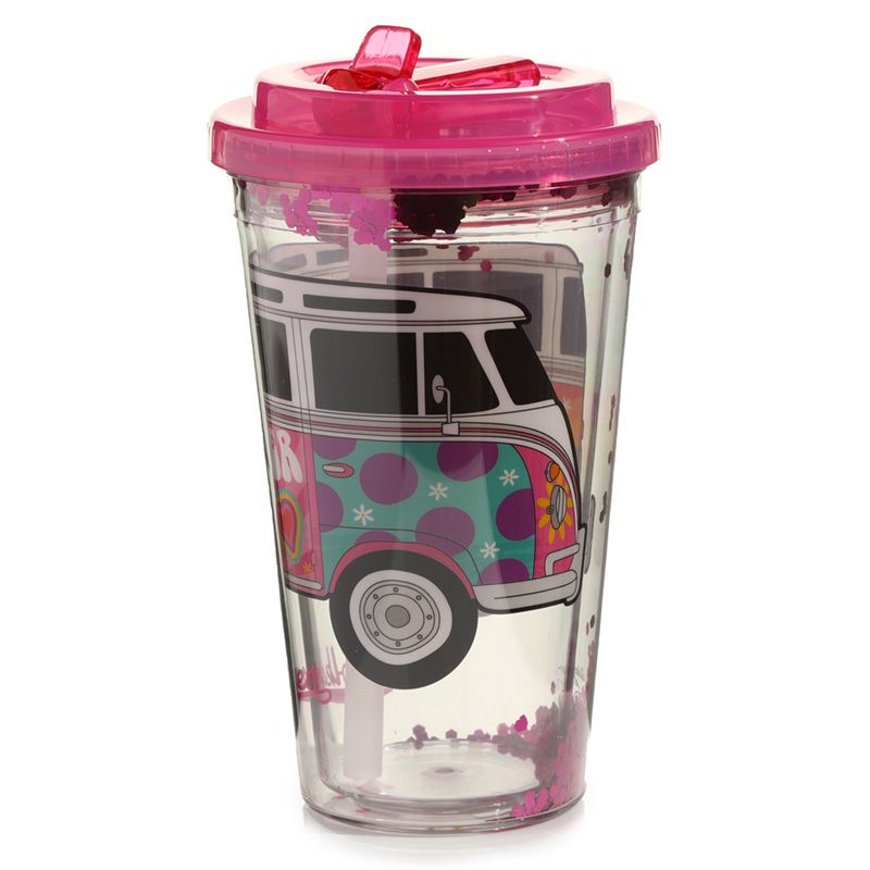 Kubek z przykrywką i słomką nietłukący próżniowy wielorazowy, podwójna ścianka - "Volkswagen VW T1 Camper Bus - Summer Love"