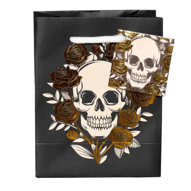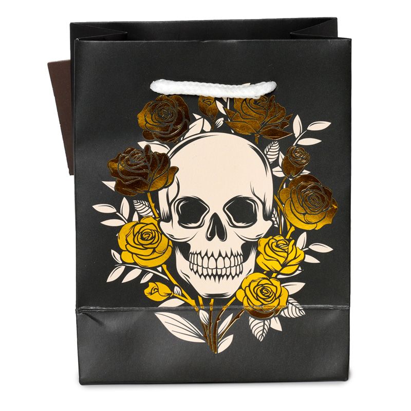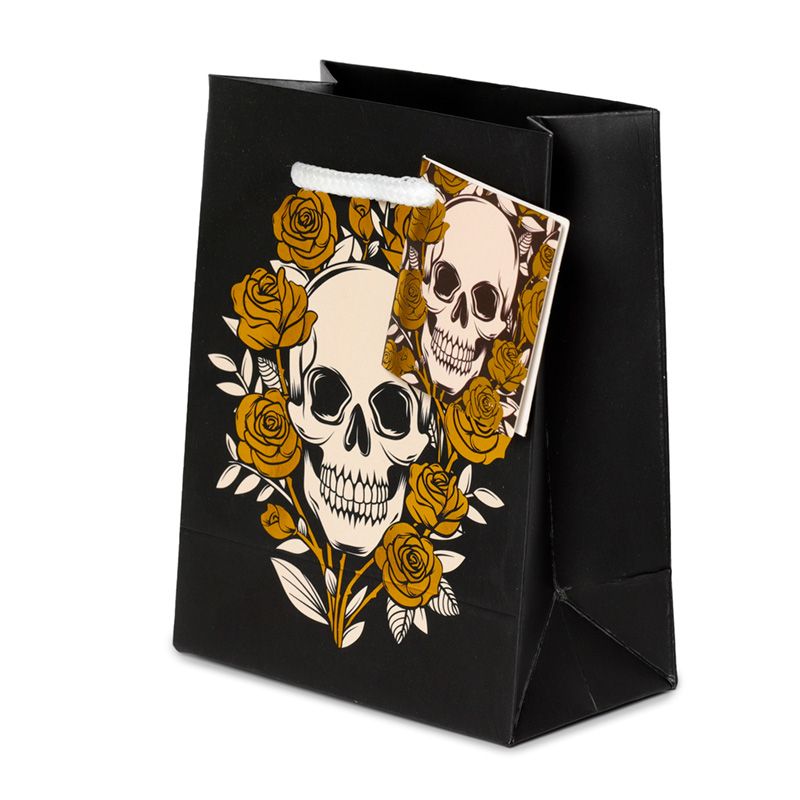 Torba na prezent w metaliczne czaszki i róże - Mała