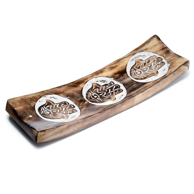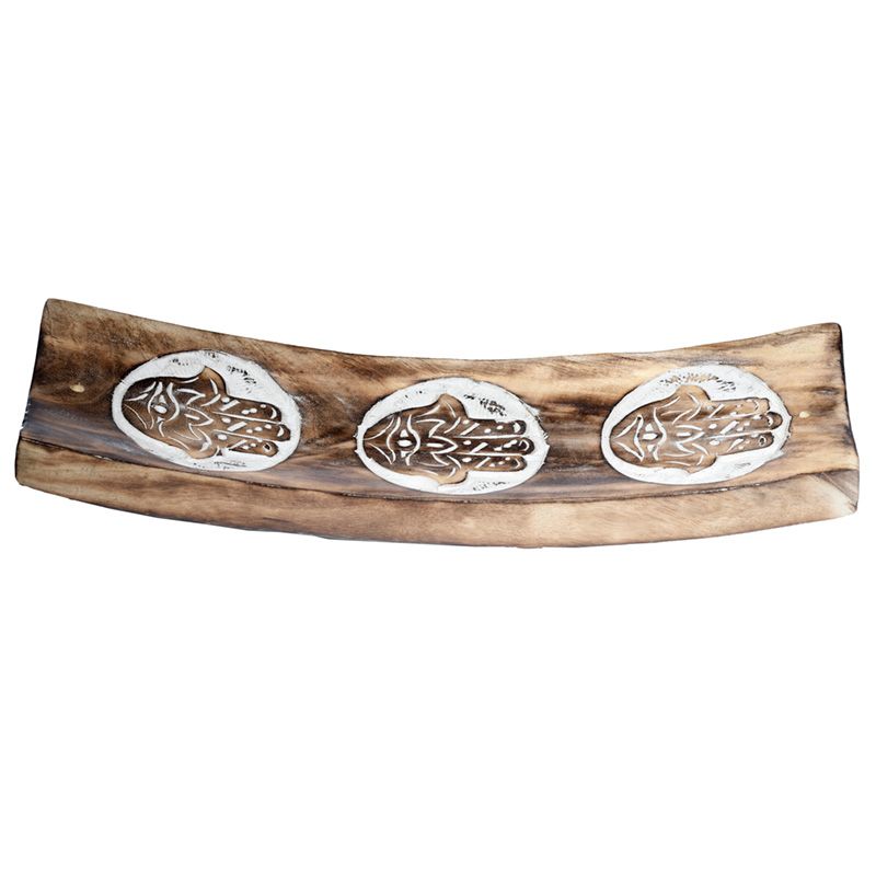 Popienica na kadzidełka z drewna z drzewa mango w kształcie łódki - motyw dłoni zen