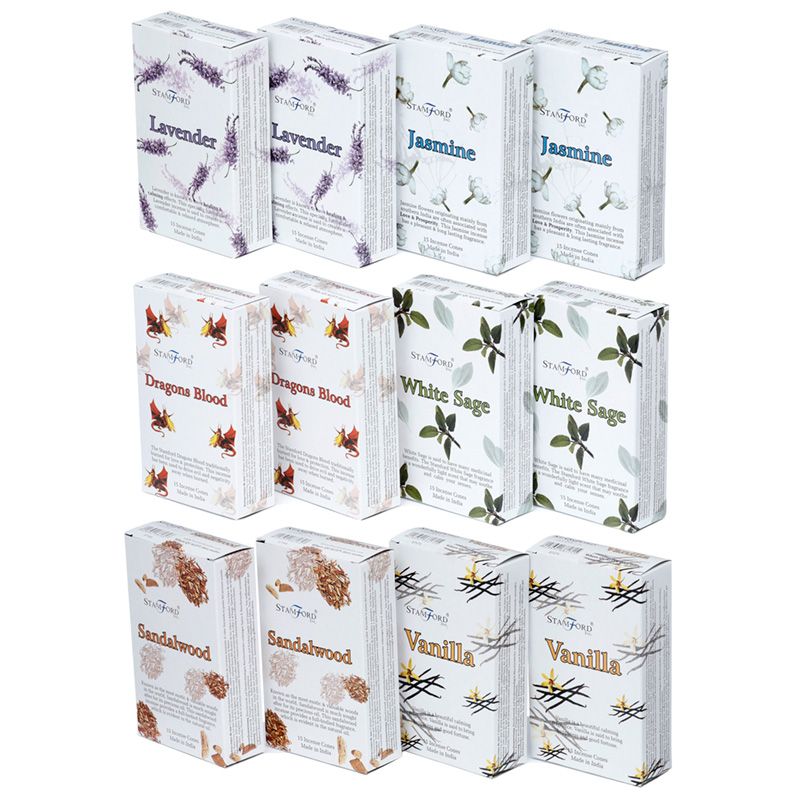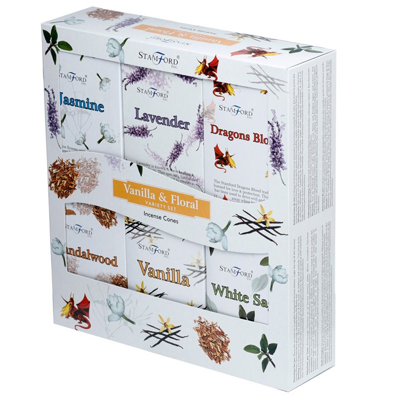 37354 Stamford Zestaw 12 paczek kadzidełek stożkowych - Wanilia i Kwiaty