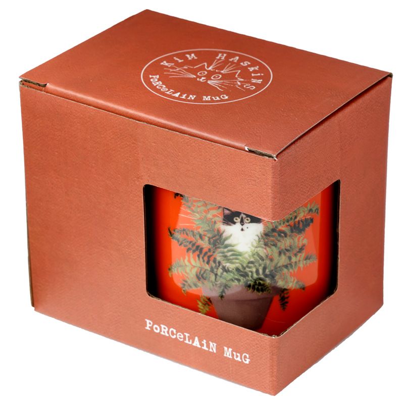 Kot w doniczce od Kim Haskins - Zielony Porcelanowy Kubek