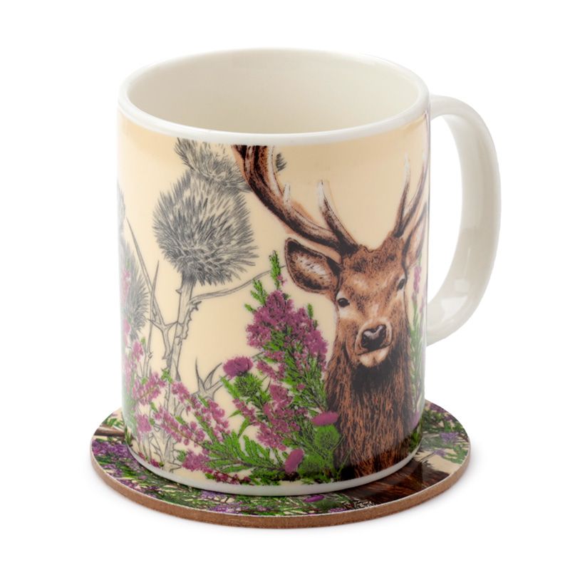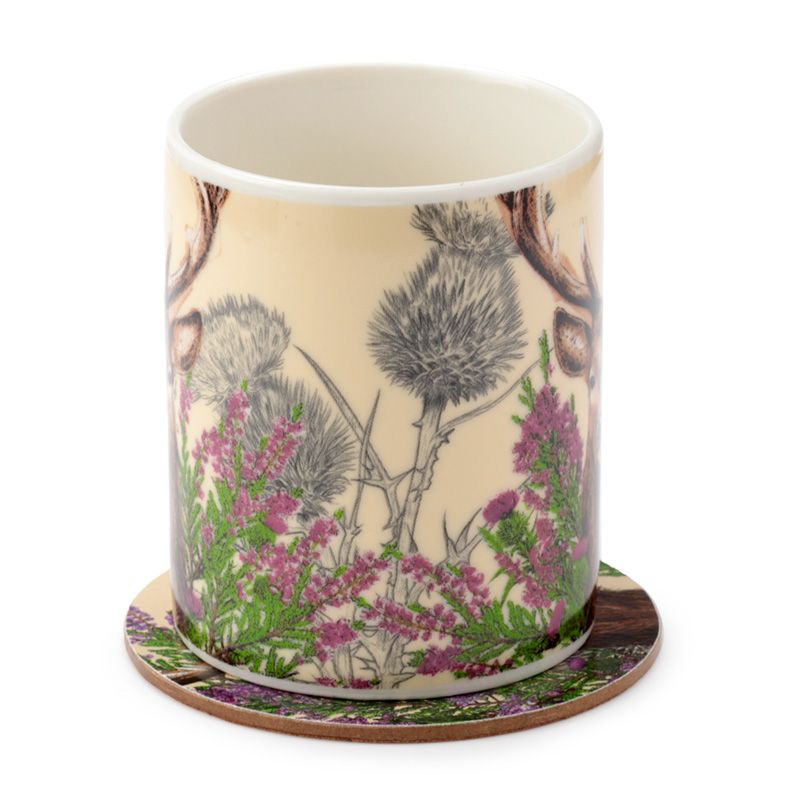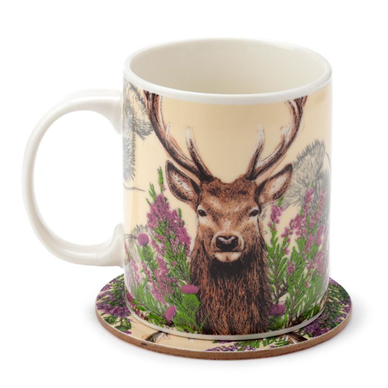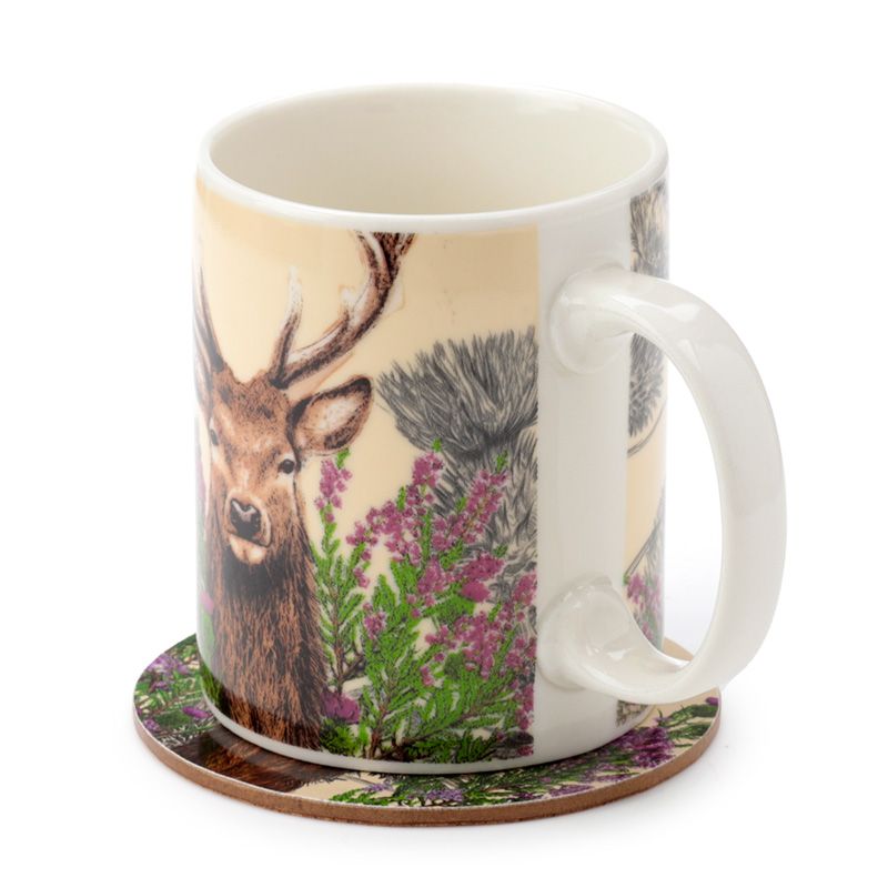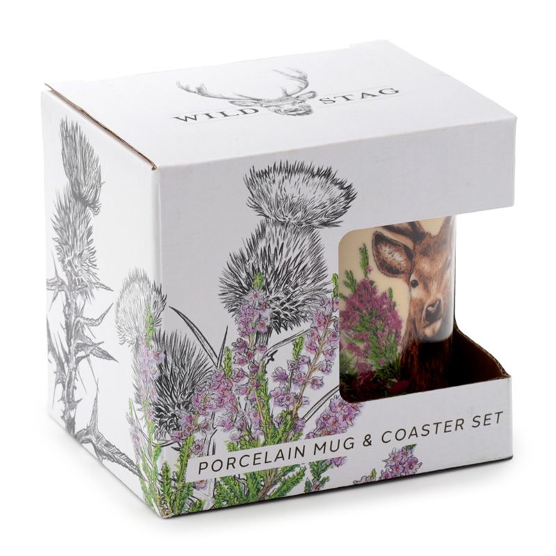 Porcelanowy kubek z zestawem podkładek Wild Stag Christmas ’Dziki Jeleń- Boże Narodzenie’