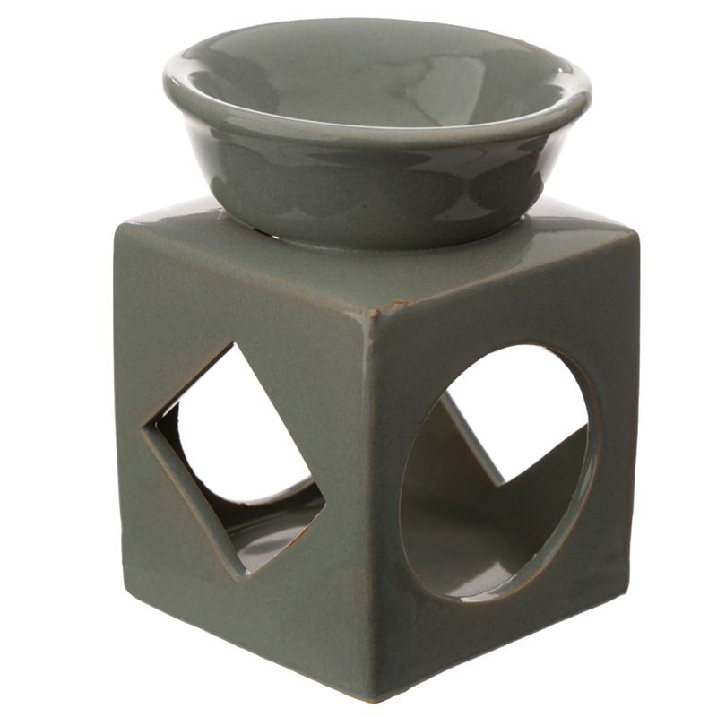 Ceramiczny kwadratowy podgrzewacz olejków i wosku tarta z wyciętymi figurami geometrycznymi "Eden"