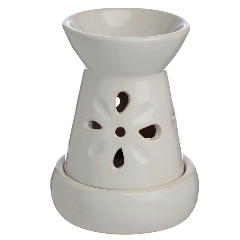 Ceramiczny podgrzewacz olejków i wosku tarta z wyciętymi kwiatami "Eden"