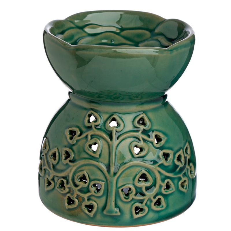 Ceramiczny podgrzewacz olejków z wyciętymi otworami w kształcie drzew "Eden"