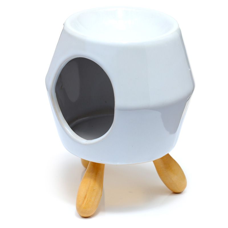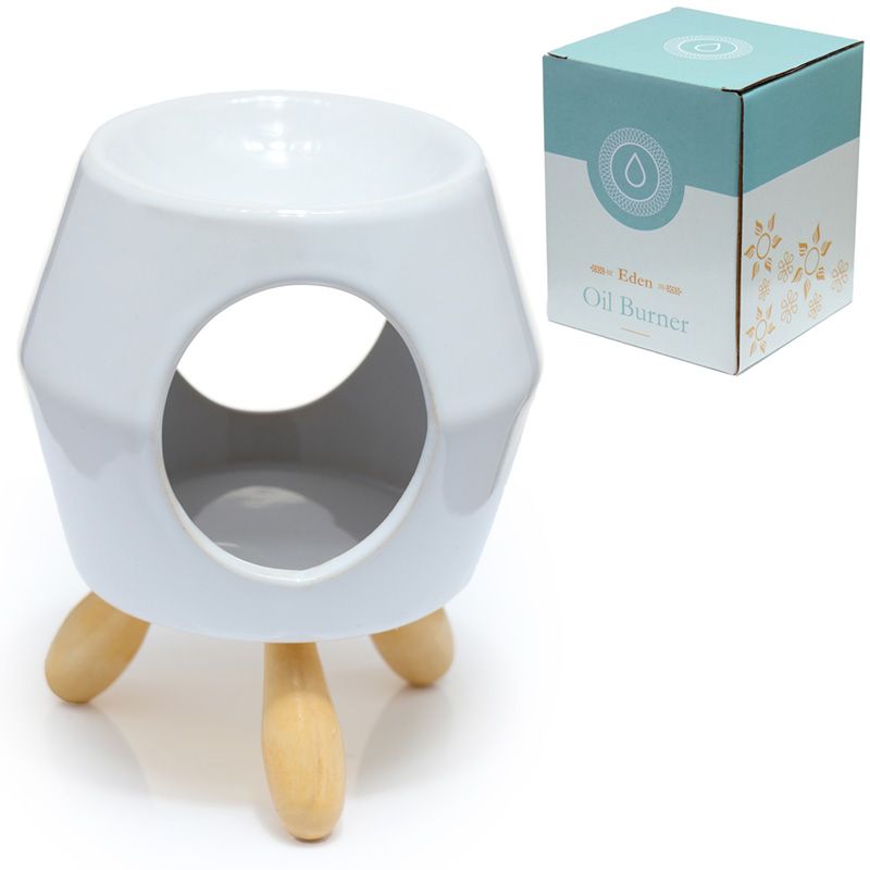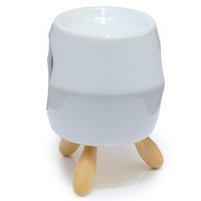Ceramiczny abstrakcyjny podgrzewacz olejków na drewnianych nóżkach "Eden" - biały