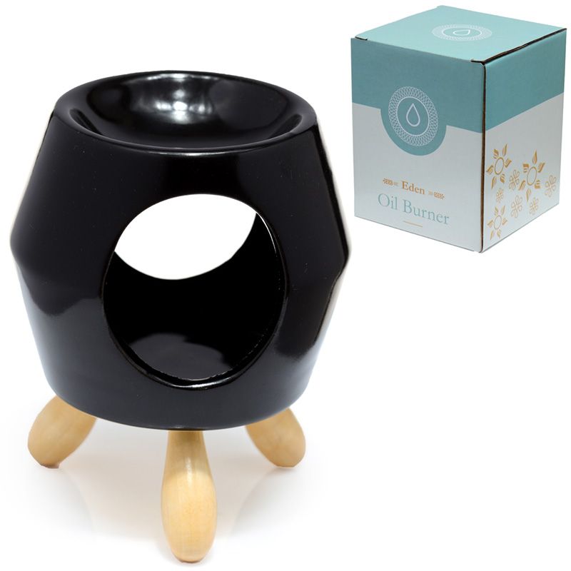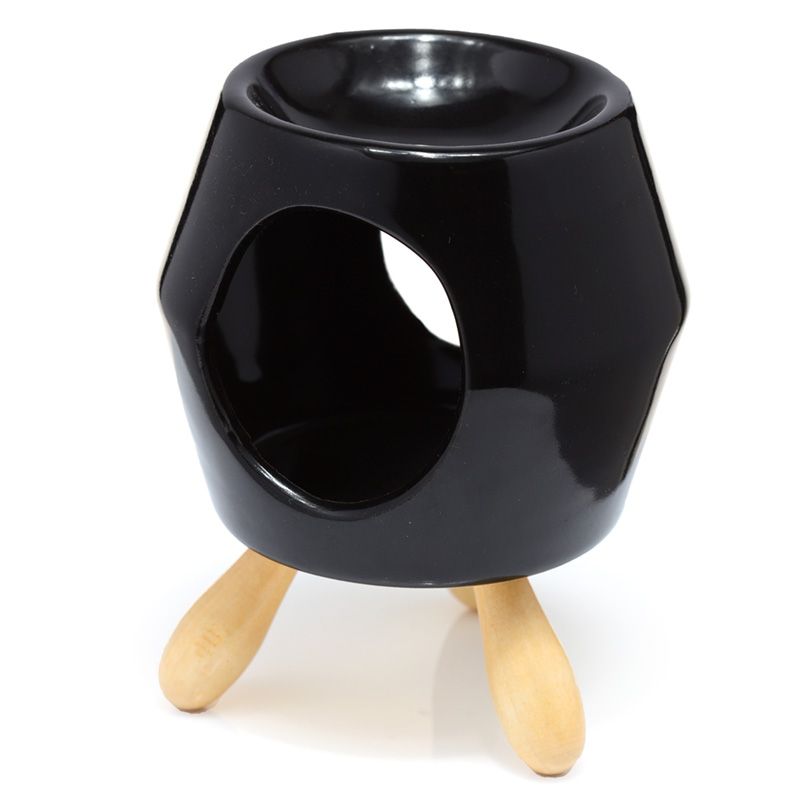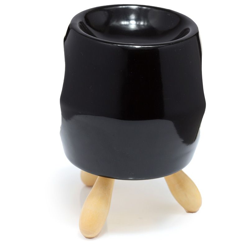 Ceramiczny abstrakcyjny podgrzewacz olejków na drewnianych nóżkach "Eden" - czarny