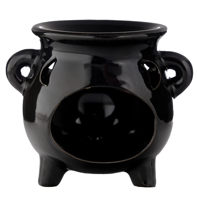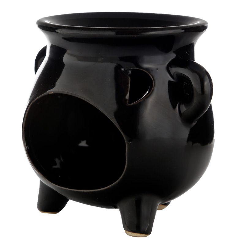 Ceramiczny podgrzewacz olejków w kształcie kociołka "Eden" - duży, czarny
