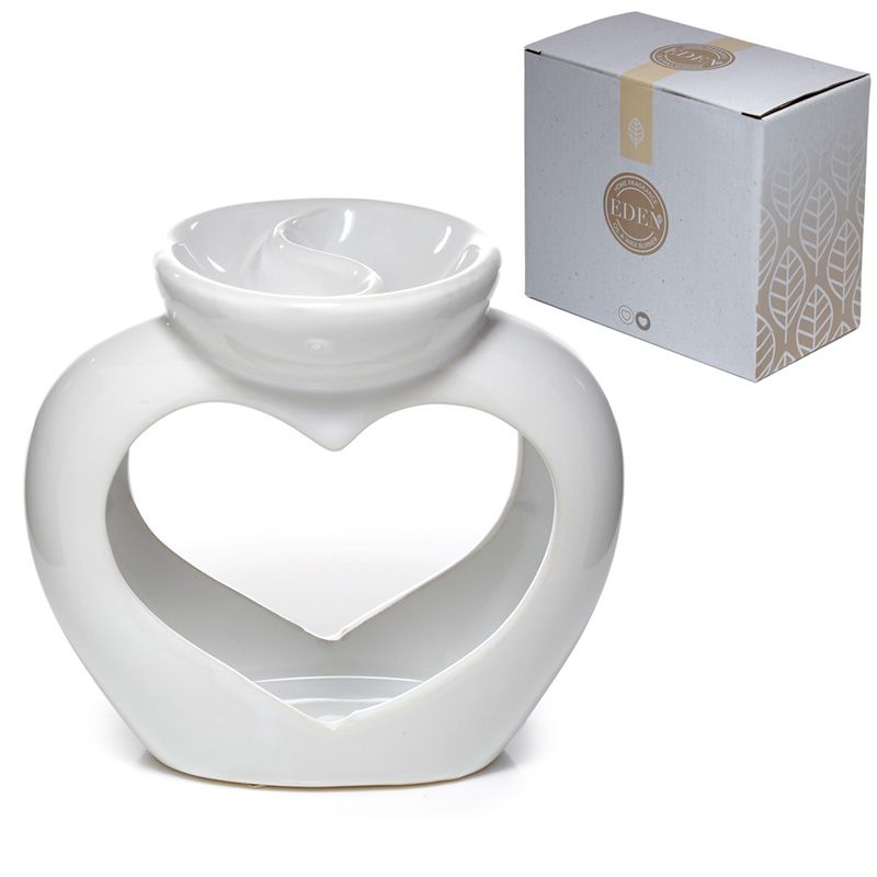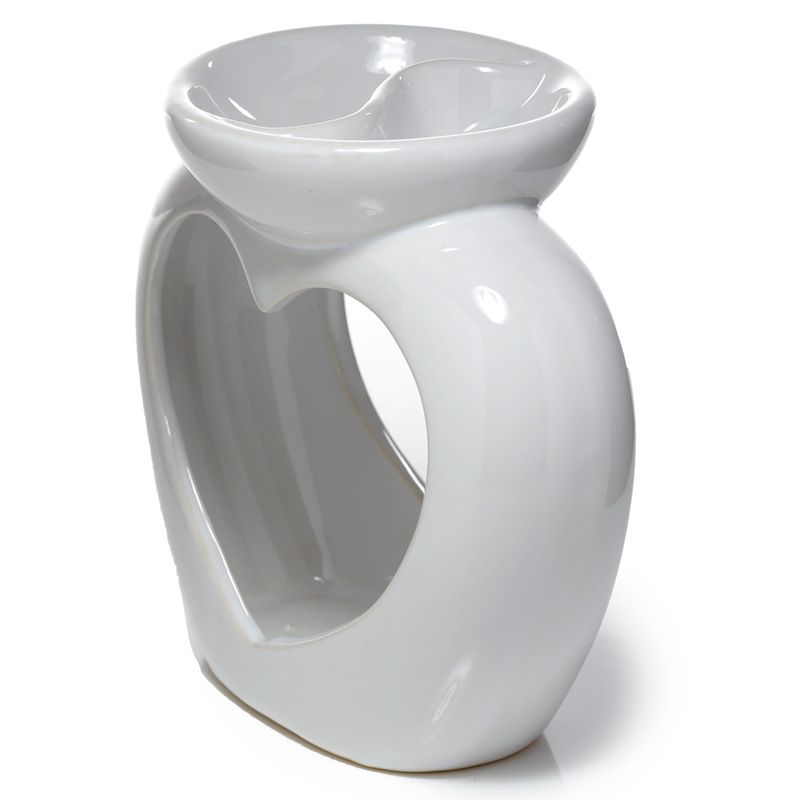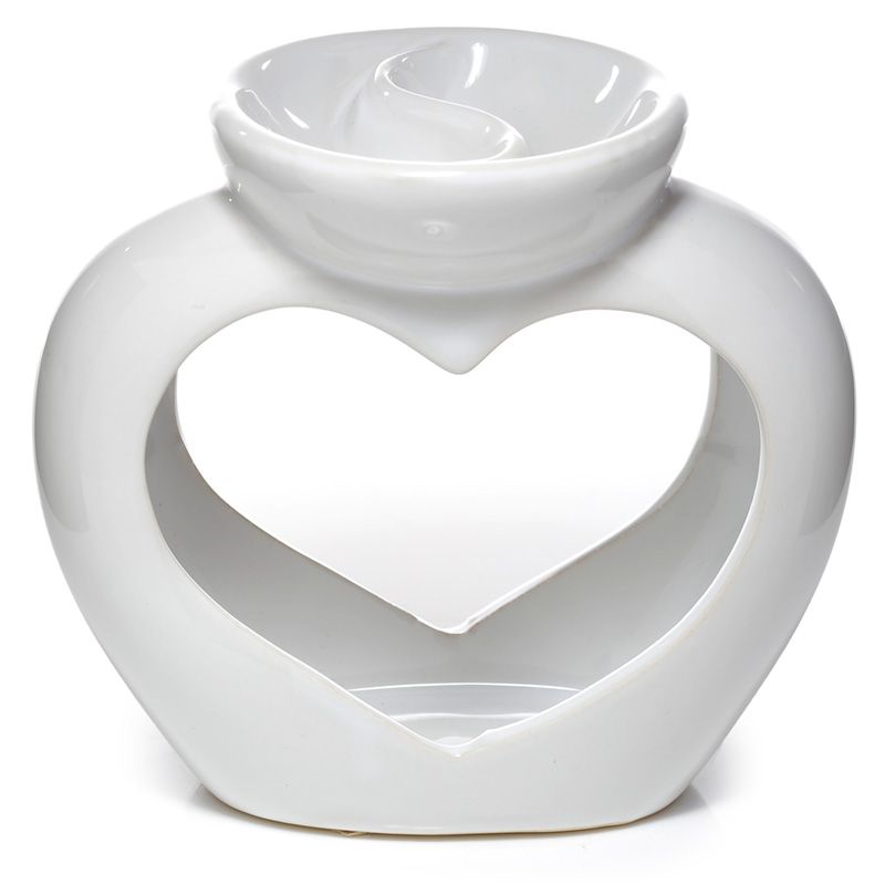 Ceramiczny podgrzewacz olejków i wosku tarta w kształcie serca z naczyniem podzielonym na dwie części "Serce" - biały