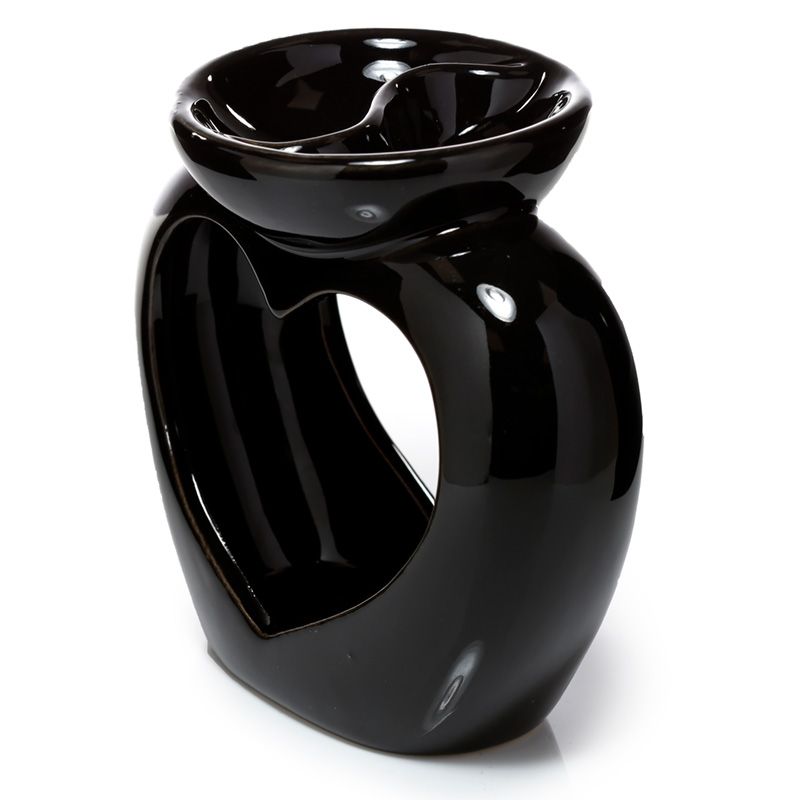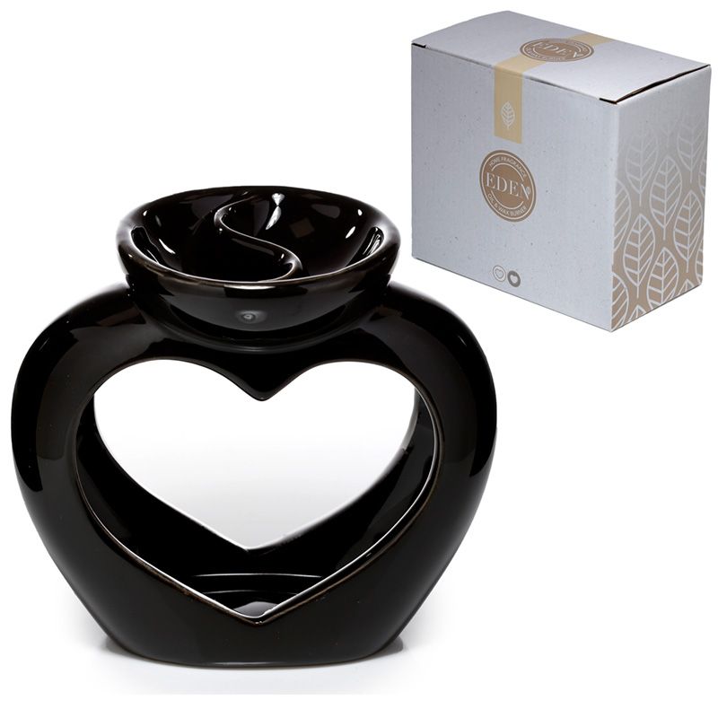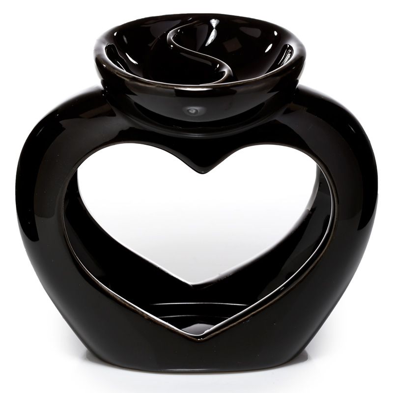 Ceramiczny podgrzewacz olejków i wosku tarta w kształcie serca z naczyniem podzielonym na dwie części "Serce" - czarny