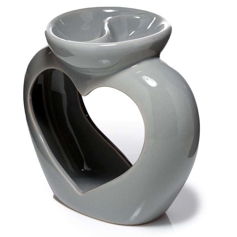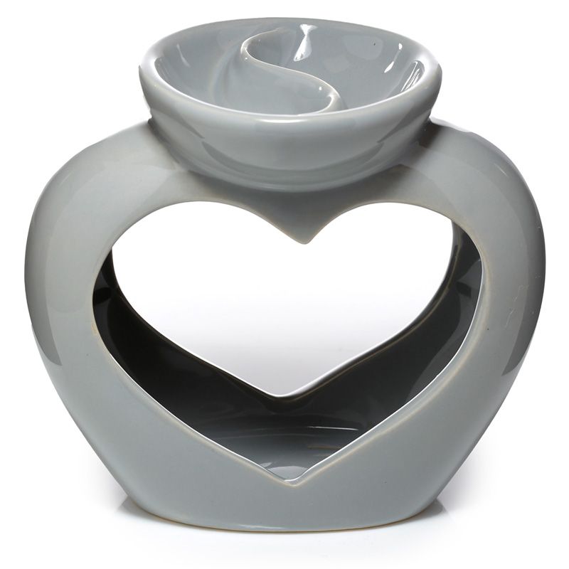Ceramiczny podgrzewacz olejków i wosku tarta w kształcie serca z naczyniem podzielonym na dwie części "Serce" - szary