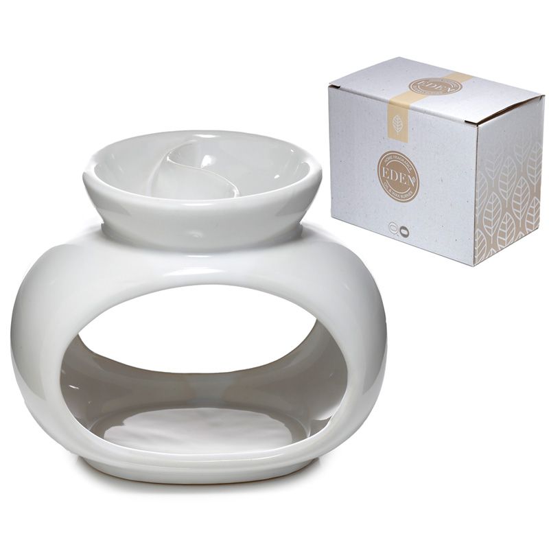 Ceramiczny podgrzewacz olejków i wosku tarta z naczyniem podzielonym na dwie części "Owal" - biały