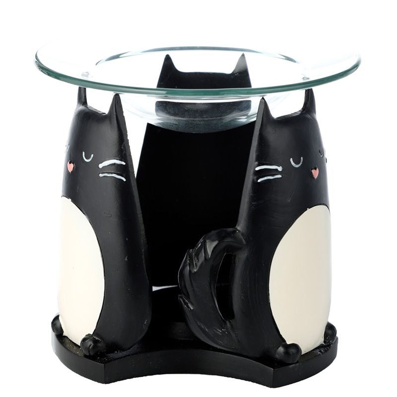 Żywiczny podgrzewacz olejków i wosku tarta ze szklanym talerzem "Kot Feline Fine"