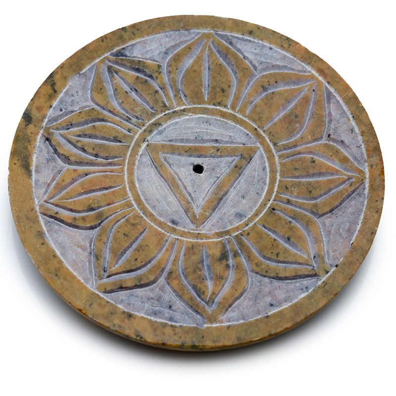 Popielniczka do kadzidełek rzeźbiona steatytowa z motywami Czakr