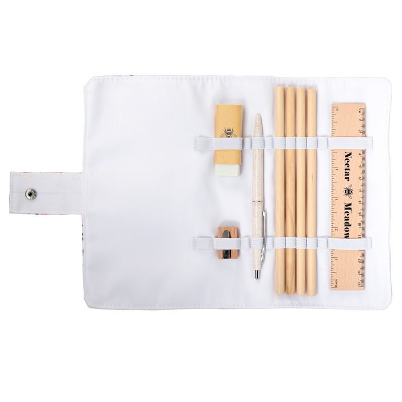 Zestaw 8 przyborów papierniczych z recyklingu w płóciennym pokrowcu – Nectar Meadows