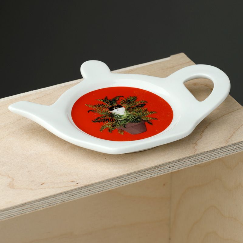 Kot w doniczce - Zielony porcelanowy imbryk na herbatę od Kim Haskins