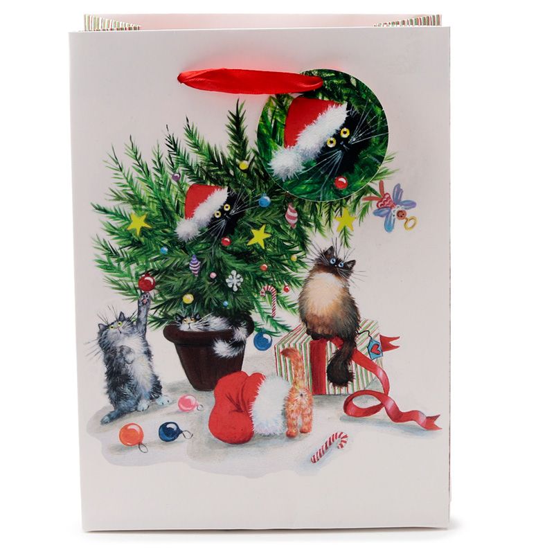Kim Haskins Świąteczna torba na prezenty z kotami, średnia