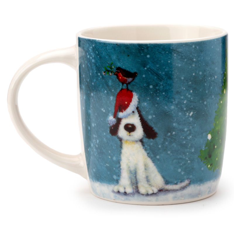 Świąteczny kubek porcelanowy - Jan Pashley Świąteczny pies i Robin