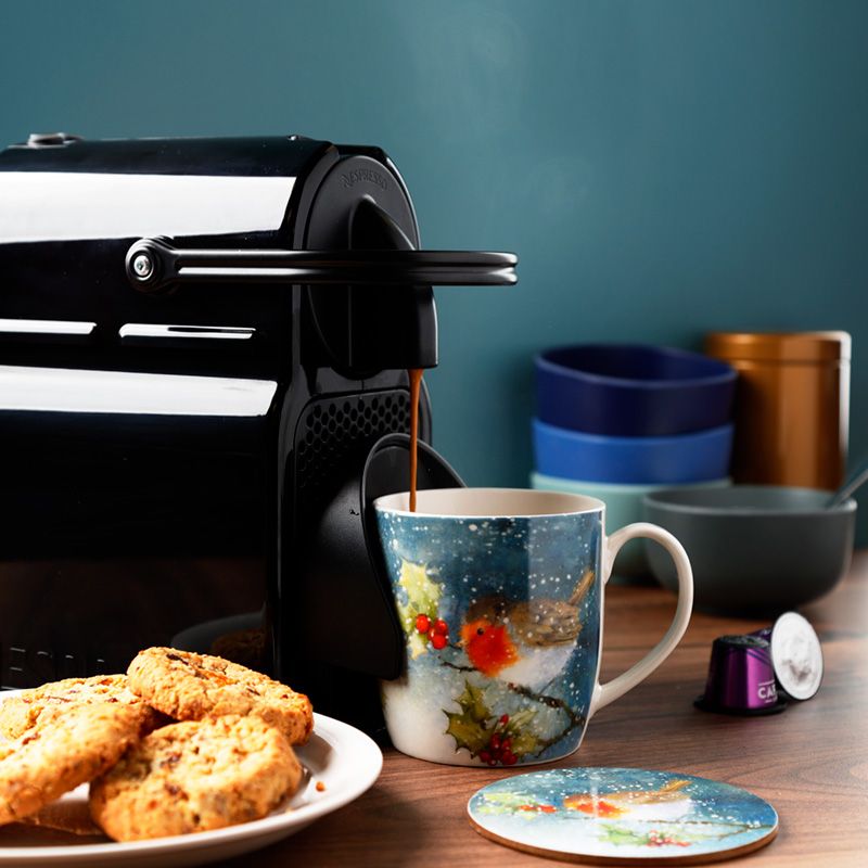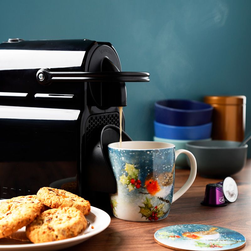 Świąteczny kubek porcelanowy z podstawką "Jan Pashley - Ptak Rudzik"